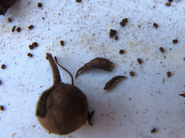 seed capsules that contain up to 100 very small seeds, the rectangular dots in